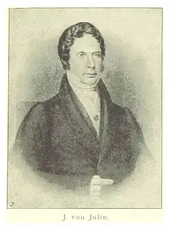 Johan (John) Jacob Julin, (since 1849 von Julin; 5 August 1787 – 11 March 1853) was a Swedo-Finnish pharmacist, factory owner and vuorineuvos.[1] His son was Albert von Julin, a businessman and also a vuorineuvos. Through his daughter Hélène, he was also the maternal grandfather of Gustaf Mannerheim, the Marshal of Finland.