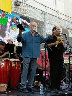 Colon was born in New York City to parents of Puerto Rican heritage. He wrote most of the Orchestra's tunes, sings, plays percussion, piano and trombone, and first found success in the world of salsa with his 1967 debut album, Boogaloo Blues.[1][2] The record was produced by George Goldner and sold around three million copies worldwide.[3] He released five albums over the period 1967-72, and in 1968 founded the East Harlem Music School.[2] His 2008 album "Keeping It Real" features the American pop songbook.
