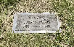 He moved to New Orleans in his youth and studied the clarinet with Lorenzo Tio and Charlie McCurdy.[8][3] He played with the bands of Frankie Duson, Kid Ory,[9] and Joe "King" Oliver.[10][3] Dodds went to Chicago and played with Oliver's Creole Jazz Band, with which he first recorded in 1923. Dodds blamed the breakup on not wanting to travel and on musical conflicts due to Oliver's failing musical abilities.[11] He also worked frequently with his good friend Natty Dominique during this period, a professional relationship that would last a lifetime. After the breakup of Oliver's band in 1924, Dodds replaced Alcide Nunez as the house clarinetist and bandleader of Kelly's Stables.[12] From 1924 to 1930, Dodds worked regularly at Kelly's Stables in Chicago.[3] He recorded with numerous small groups in Chicago, including Louis Armstrong's Hot Five and Hot Seven and Jelly Roll Morton's Red Hot Peppers. He also recorded prolifically under his own name, Johnny Dodds' Black Bottom Stompers, between 1927 and 1929 for Paramount, Brunswick/Vocalion, and Victor. He became a big star on the Chicago jazz scene of the 1920s, but his career precipitously declined with the Great Depression.[13] Although his career gradually recovered,[5] he did not record for most of the 1930s, affected by ill-health; he recorded only two sessions—January 21, 1938, and June 5, 1940—both for Decca. On August 8, 1940, Dodds died of a stroke in his Chicago home[14] and was buried at Lincoln Cemetery in Blue Island, Illinois.