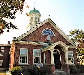Johnson founded the village of Johnstown – originally "John's Town" – in 1762, naming it after his son John Johnson.[7] Johnson built a school, which was free but not mandatory, to educate both Mohawk and white children. He was also instrumental in the organization of St. John's Episcopal Church. Johnson, who had been living in what is now known as Old Fort Johnson, also built a large manor house and estate for himself in 1763, Johnson Hall, where he lived until his death. Johnson Hall was designated a National Historic Landmark in 1960. New York State operates it as a historic site.