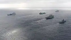The first phase of Cougar 14 was exercise Albanian Lion 2014, followed by exercise Dragon Hammer 2014, concluding by 17 October 2014.[40] Several ships also broke off to participate in the middle-eastern IMCMEX exercise. Once completed, they regrouped with the Cougar 14 Task Group for further exercises in the region.[41][42]