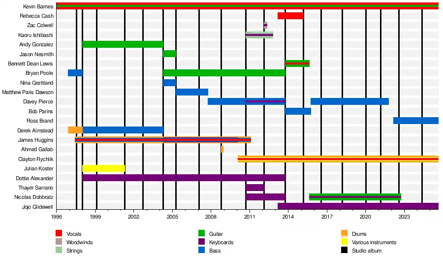 of Montreal[a] is an American indie pop band from Athens, Georgia. It was founded by frontperson Kevin Barnes in 1996, named after a failed romance between Barnes and a woman "of Montreal". The band is identified as part of the Elephant 6 collective. Throughout its existence, of Montreal's musical style has evolved considerably and drawn inspiration from 1960s psychedelic pop acts.