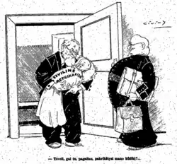 Caricature of Šliūpas and his lobbying efforts on civil registration published in December 1938