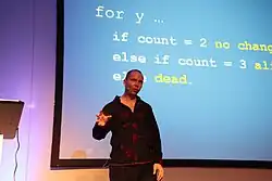 In 1989, Blow attended UC Berkeley as an undergraduate, double-majoring in computer science and English.[2] He started as a physics major but switched to computer science because he "just felt called in that direction".[9] He was a member and president of the Computer Science Undergraduate Association, as well as the eXperimental Computing Facility, an undergraduate computer-interest organization.[10][11][12] During college, Blow wrote some science fiction, which he published under a pseudonym.[13] He spent five years at UC Berkeley[2] but dropped out with less than one semester to go.[14] He said; "I was really depressed about being at school, I didn't like it. I didn't have a good time."[15]