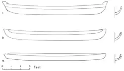 In this region it is essentially a small, inshore boat and it is rarely built to a length of more than about 12−14 feet (3.7−4.3 m). It is typically a one-man boat, with a length of 9−10 feet (2.7−3 m), with depth at the mid-section about 10−12 inches (25.4−30.5 cm). It consists of a dugout base, with the hull spread slightly, and the sides built up by the addition of a single plank.[4] Larger versions have a small triangular sail, and smaller versions are usually propelled by a short, single-bladed paddle or rarely by a double-bladed paddle.[5]