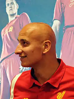 Shelvey signed for Liverpool in May 2010, for an initial fee of £1.7 million.[15] Shelvey made his debut for the club as an extra-time substitute on 22 September in the Reds' shock League Cup third-round defeat against League Two team Northampton Town at Anfield, with Liverpool losing 4–2 on penalties (with Shelvey scoring in the shootout) after a 2–2 draw.[16] Shelvey started his first match for the club in Liverpool's Europa League group match against Napoli on 21 October 2010, playing the whole 90 minutes match in a 0–0 draw.[17] On 24 October, Shelvey made his Premier League debut against Blackburn Rovers at Anfield, coming on for the final stages in place of Raul Meireles in the Reds' 2–1 win.[18]