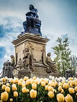 Arguably the most important commemoration for Vondel is Amsterdam's biggest park, the Vondelpark, especially with the statue of Vondel in the northern part of the park. The statue was erected in 1867 and made by the sculptor Louis Royer; the plinth for the statue was designed by the famous architect Pierre Cuypers.[146]