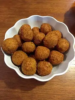 | Falafel (فلافل) | Balls of fried chickpea flour and Middle Eastern spice. Dipped in every mezze, especially hummus. The Jordanian falafel balls tend to come in smaller sizes. |