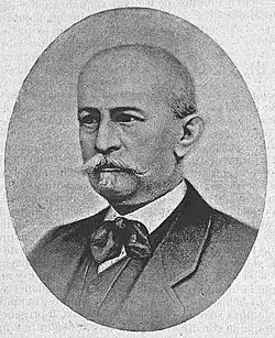 Cortina settled back in Marchena, assuming what was left of once large estate of his father. It is not known whether it was expropriated as repressive anti-Carlist measure or - during 20 years of his absence - divided among the relatives; in the press his economy was referred to "hacienda de Porcun".[79] He immediately resumed Carlist activity and in 1899 entered the Sevilla Junta Provincial,[80] soon growing to its vice-president.[46] His engagement in gear-up to a Carlist uprising, planned at that time, is unclear. None of the sources treating the subject mentions his name,[81] while a single but highly reliable work claims he remained actively involved and as a reward the claimant promoted him to general;[46] most other authors suggest the promotion acknowledged his wartime Philippine advantages.[82]
