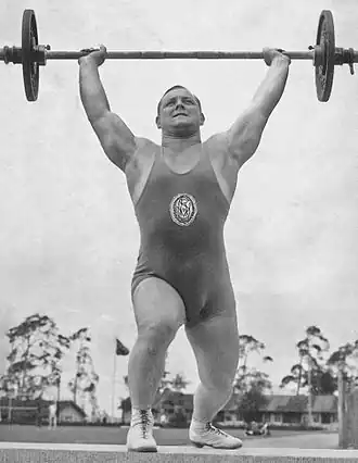 Josef Manger (26 May 1913 – 13 March 1991) was a German heavyweight weightlifter who won a European title in 1935, an Olympic gold medal in 1936, and two world titles in 1937 and 1938. Between 1935 and 1941 he set 11 ratified world records, ten in the press and one in the snatch.[1] His career was cut short by World War II, after which he worked as a salesman. A street in Bamberg, his hometown, was named in his honor.[2]
