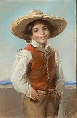 Josef Schretter (18 March 1856, Inzing - 18 March 1909, Innsbruck) was painter from Austria-Hungary; specializing in portraits and genre scenes.