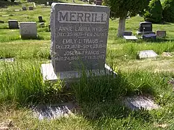 Merrill served as an apostle until his death in 1952 in Salt Lake City from coronary thrombosis.[6] Upon his death, fellow apostle Joseph Fielding Smith offered the following tribute: "I marveled at his energy. Apparently he never got tired; he loved the truth. He loved the truth of science, but he loved more the truths of the gospel of Jesus Christ ... He had a strong will, was pronounced in his opinions, but he was always submissive to the majority decisions of his brethren."[7] Merrill was buried at Salt Lake City Cemetery.