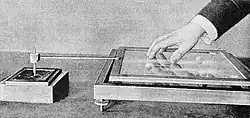 To detect unconscious movement of the hand, Jastrow invented a machine he called the automagraph.[34] He found that when a subject was asked to concentrate on an object, their hand moved unconsciously in that direction.[35] The magnitude of the effect varied across individuals, especially in children, where the movement was more random.[36]