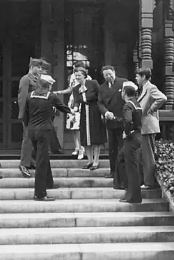 Governor Broughton and First Lady Broughton welcoming U.S. Servicemen to the North Carolina Executive Mansion in 1941.