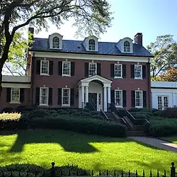 Joseph Melville Broughton, Jr. was the son of Joseph Melville Broughton and Sallie Harris. He married Alice Willson in 1916, they had four children. He was the nephew of Needham B. Broughton and a first cousin of Carrie Lougee Broughton.[18] He was also a first cousin of medical doctor and Baptist minister Len G. Broughton. Broughton and his wife lived in the Jolly-Broughton House, a Georgian Revival mansion located in Raleigh's Hayes Barton Historic District, before and after living in the North Carolina Executive Mansion.[19] He was interred at Montlawn Memorial Park in Raleigh.