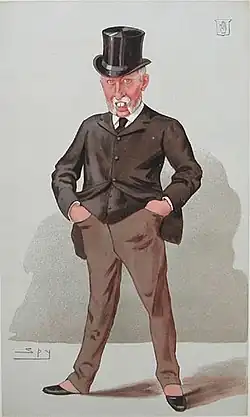 Pease as caricatured by Spy (Leslie Ward) in Vanity Fair, October 1887