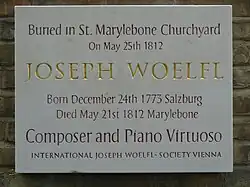 Woelfl suffered from tuberculosis, and died of the disease[6] in Great Marylebone Street, London, on 21 May 1812.[3] He is buried in St. Marylebone Churchyard.