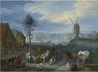 Joseph Bredael painted mostly landscapes and battles and made both copies and pastiches of compositions of 17th-century painters who were still popular in the 18th century such as Jan Brueghel the Elder, Philips Wouwerman and Claude.[6][9]