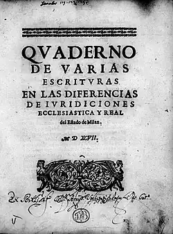 - Quaderno de varias escrituras en las diferencias de iuridiciones ecclesiastica y real del estado de Milan (in Spanish). Milano: Georg Herolt. 1597.