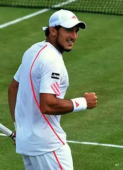 Juan Mónaco (Spanish pronunciation: [ˈxwam ˈmonako];[1][a] born 29 March 1984), nicknamed "Pico", is an Argentine former professional tennis player. He won nine singles titles, reached the semifinals of the 2010 Shanghai Masters and the 2012 Miami Masters, and achieved a career-high singles ranking of world no. 10 in July 2012. He announced his retirement from professional tennis on 15 May 2017.