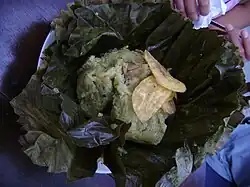 | Main ingredients | rice, meat, olives, hard-boiled egg, spices among others, bijao (macaw-flower) leaves |