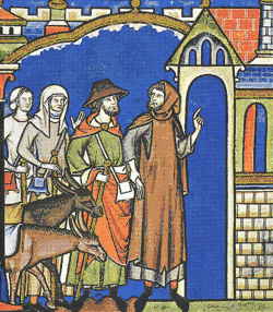According to the King James Version and the New International Version, the concubine was unfaithful to the Levite; according to a note in the Septuagint[5] and in the New Living Translation she was "angry" with him.[6] Rabbinical interpretations say that the woman was both fearful and angry with her husband and left because he was selfish, putting his comfort before his wife and their relationship,[7] and the Cambridge Bible for Schools and Colleges argues that the translation as 'angry' "suits the context, which implies a quarrel, but not unfaithfulness, on the woman’s part".[5] The Levite travelled to Bethlehem to retrieve her, and for five days her father managed to persuade him to delay their departure. On the fifth day, the Levite declined to postpone their journey any longer, and they set out late in the day.