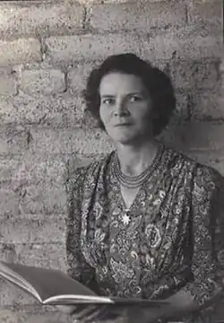 After two years at the AAAS, Tyberg returned to Los Angeles, where on May 1, 1953, she founded the East–West Cultural Center.[31] In line with Sri Aurobindo's dictum "The Knowledge that unites is the true Knowledge."[32] Tyberg intended the EWCC to be a "broad and non-sectarian"[31] forum for building cultural reciprocity between East and West as well as presenting a variety of aspects of spiritual life. She single-handedly conducted classes in Sanskrit, Hindi, Pali, and Greek, studies in comparative religion and sacred scriptures, and the yoga of Sri Aurobindo and the Mother. Tyberg organized guest lectures on Indian art and culture, dramatic readings from Indian literary classics, concerts and dance performances. She inaugurated an Oriental Library and bookshop with resources on India's many yogic paths. In the isolationist atmosphere of the Korean War, where "those interested in spiritual things are very much in the minority", her activities were pioneering.[31] From 1953 to 1973, Tyberg also operated "The East West Cultural Center School for Creatively Gifted Children", which received full accreditation by the Los Angeles and California school boards. The school promised cultivating "aesthetic and studious habits". In an echo of her Raja Yoga school training, Tyberg aimed at inspiring children with "the highest ideals" by focusing on their "god-like qualities".[29] Tyberg singlehandedly taught all school subjects, as well as music theory and piano. Many of her graduates were accepted by leading colleges as much as two years in advance of public school students, and Tyberg's school is remembered by them as "a wonderful and unique opportunity".[33]