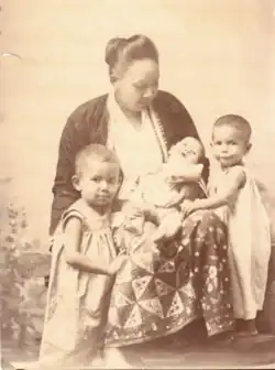 Julia Henriëtte Adolfs was born on 24 January 1899 in Semarang, Central Java to Henriëtte (née Donkel) and Cornelis Gerardus Adolfs, as one of eight children.[9] Her father, known as Gerrit (1871-1945), was the youngest son of a shipwright from Amsterdam, who, without formal qualifications, had moved to the Dutch East Indies in 1894, where he married Henriëtte Donkel, known as Jet (1874-1949). She was most fluent in Javanese, of mixed origin, a descendant of Dutch East India Company soldier and later major Donkel.[10] Julia was their second child and eldest daughter. Her older brother Gerard, known as "Ger" would become a renowned self-taught painter. The father was known for his skill as an amateur painter, photographer and musician. The mother's family, of Javanese - Dutch ancestry worked in the rail and hotel transport business in Semarang. The young family grew to include eight Indo-European children whilst moving from village Kunduran to Blora and Gundih before finally settling in the city of Surabaya due to father Gerrits career with the Samarang–Joana Stoomtram Maatschappij (SJS).[11][12] As adults, nearly all siblings resided in the same area, in and around Bengawanstraat (Jalan Bengawan) in the European district of Darmo.