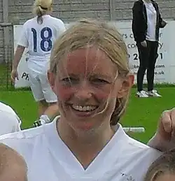 Julie Fletcher born in Dulwich, is a former English footballer, and former England international player.[1] A full-back comfortable on either flank, Fletcher began her career with ten years at Millwall Lionesses.[2] During her career she won the Women's FA Cup three times.
