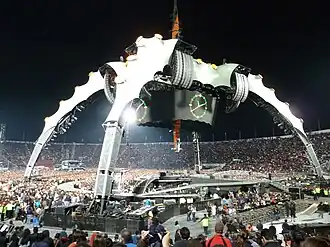 The stadium hosts many international and national concerts during the year. In 1977, Spanish singer Julio Iglesias was the first musical act and first solo artist to perform in the stadium.[18] Years later, in 1989, Rod Stewart performed what is considered the first proper rock concert by an international artist in the venue, drawing 70,000 fans to his Out of Order Tour, with the show being broadcast on TV throughout the country.[19] After that show, the city started being included in many tours from international artists, using several facilities from the Stadium park.