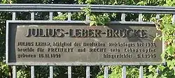 A bridge in Berlin-Schöneberg is named after Julius Leber and bears a commemorative plaque. The inscription reads "Julius Leber, member of the German Reichstag until 1933, sacrificed his life for FREEDOM and JUSTICE." The nearby S-Bahn station is named "Julius-Leber-Brücke".
