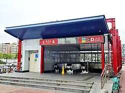 The roof slab of the Line 8 station was sealed on 28 October 2018.[5] The power transmission was successfully carried out in March 2020,[6] and the "three rights" transfer was completed on 30 September the same year.[7] On 26 November 2020, the station opened with the opening of the northern extension of Line 8.[8]