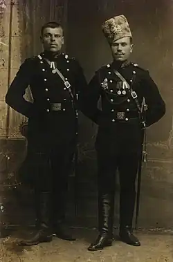 Immediately following the assassinations, Serbian envoy to France Milenko Vesnić and Serbian envoy to Russia Miroslav Spalajković put out statements claiming that Serbia had warned Austria-Hungary of the impending assassination.[8] Serbia soon thereafter denied making warnings and denied knowledge of the plot.[9] By 30 June, Austro-Hungarian and German diplomats were requesting investigations from their Serbian and Russian counterparts, but were rebuffed.[10] On 5 July, based on interrogations of the accused assassins, Potiorek telegraphed Vienna that Serbian Major Voja Tankosić had directed the assassins.[11] The next day, Austro-Hungarian chargé d'affaires Count Otto von Czernin proposed to Russian Foreign Minister Sergey Sazonov that the instigators of the plot against Ferdinand needed to be investigated within Serbia, but he too was rebuffed.[12]
