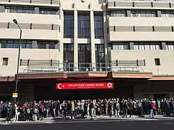 The government has consistently accused the CHP of allegedly maintaining links with exiled cleric Fethullah Gülen and his Cemaat Movement. A former ally of the AKP and widely known for his influence in the Turkish judiciary, Gülen had allegedly sought to increase influence over the CHP after falling out with Erdoğan in 2013. The difference between Gülen's Islamist and the CHP's secular ideology resulted in inner-party controversy and led to the resignation of İzmir MP Birgül Ayman Güler in January 2015.[73] The party voiced support Bank Asya, a pro-Gülen bank that the AKP government attempted to shut down in 2014 and also applied to visit the head of the pro-Gülen Samanyolu TV in Silivri Prison.[74] The CHP planned 50 electoral rallies throughout Turkey in what Kılıçdaroğlu styled as a 'meeting marathon' (Miting maratonu). During visits to different provinces, Kılıçdaroğlu is also due to make unplanned visits to town centres and other public places to meet with voters directly. Special measures were taken for people with disabilities, with the party accompanying its televised electoral rallies with sign language.[75] The party's inaugural electoral rally was held on 11 April in the Kartal district of Istanbul. The rally was styled as the 'National Applause rally' (Milletçe Alkışlıyoruz mitingi). During the rally, Kılıçdaroğlu appeared to unveil a new slogan, 'Do not be afraid, do not give up, do not cower' (Korkmayın, yılmayın, sinmeyin).[76] The CHP has also targeted to win votes from the centre-right.[77][78]