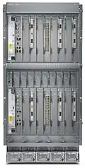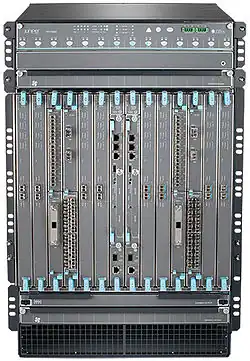 By 2004, Juniper controlled 38% of the core router market.[36] By 2007, it had a 5%, 18% and 30% share of the market for enterprise, edge and core routers respectively.[37] Alcatel-Lucent was unsuccessful in challenging Juniper in the core router market but continued competing with Juniper in edge routers along with Cisco.[38][39]