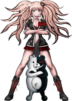 ![]() Junko behind Monokuma, as depicted in Danganronpa: Trigger Happy Havoc. | |