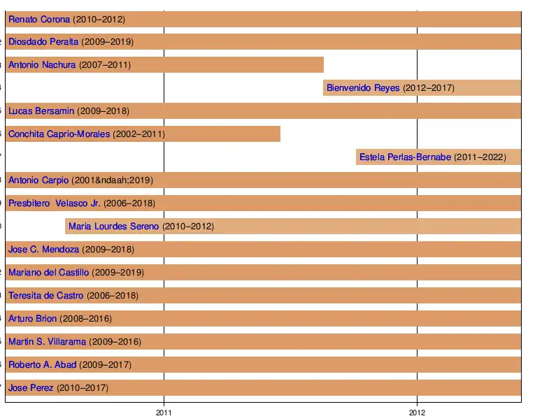 - ^ Gavilan, Jodesz (October 23, 2019). "FAST FACTS: Who is new Supreme Court Chief Justice Diosdado Peralta?". RAPPLER. Retrieved October 6, 2023.