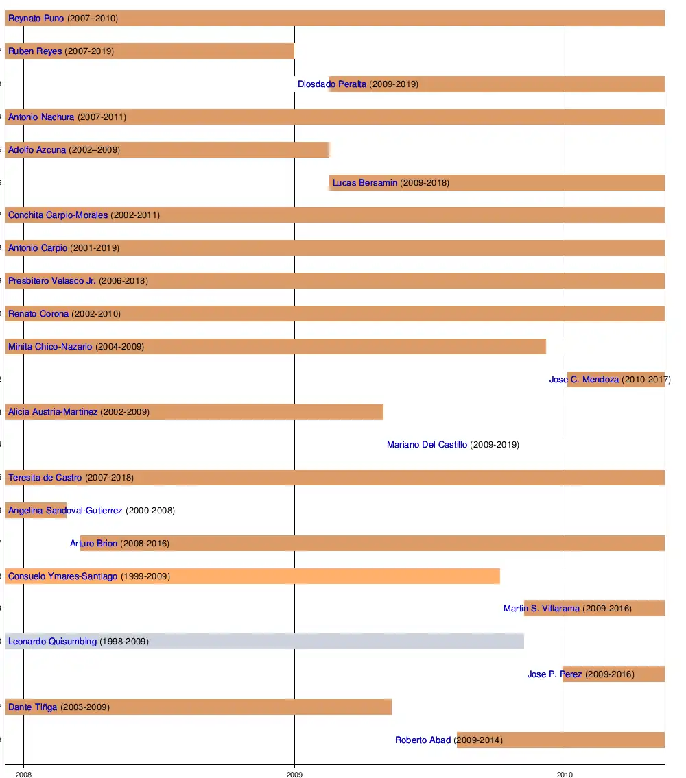 Membership timeline of the Leonardo-de Castro Court (2018)