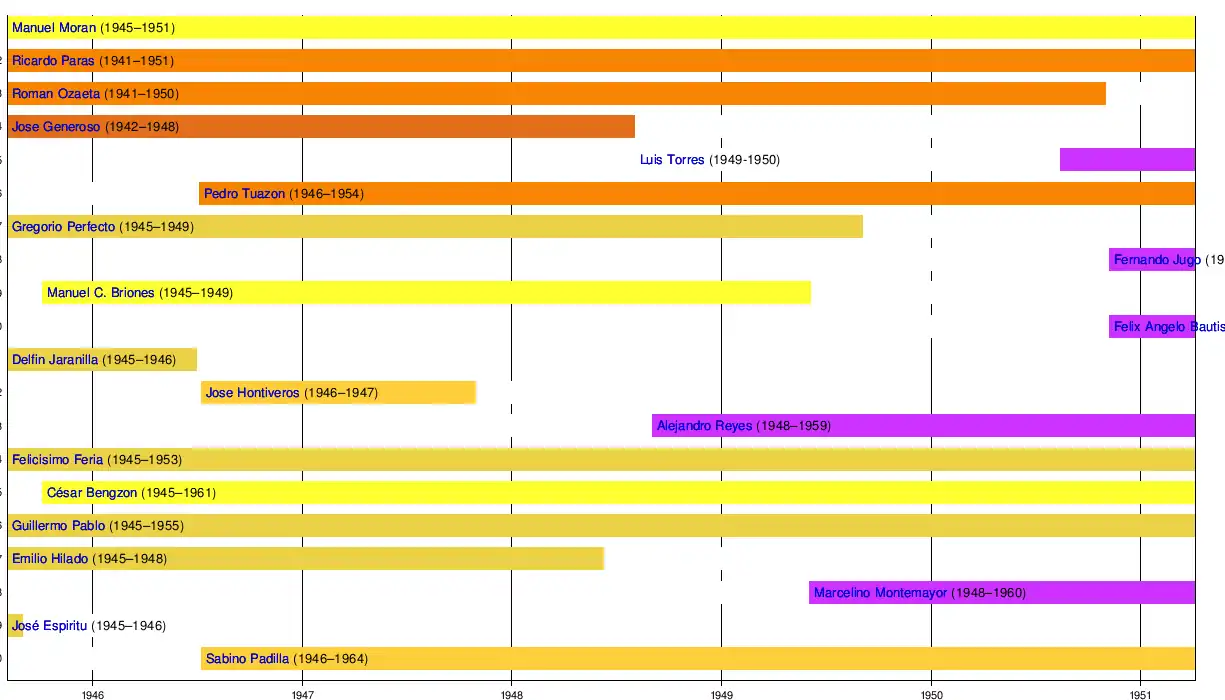 | (36) | | Manuel Moran (1893–1961) | Chief Justice | Court reorganized | July 9, 1945 | March 20, 1951 | 5 years, 254 days | |