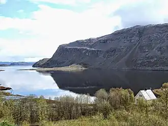 Kåfjorden (Norwegian) or Njoammelgohppi (Northern Sami) is a fjord in Alta Municipality in Finnmark county, Norway. The 8-kilometre (5.0 mi) long fjord branches off the main Altafjorden. The village of Kåfjord and the Kåfjord Church both lie along the northern coast of the fjord. The European route E06 highway follows the northern shoreline of the fjord. A bridge over Kåfjorden was built in 2013 to shorten the E6 highway route around the fjord.[1][2]