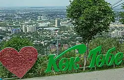 The Kök Töbe or Kök-Töbe (Kazakh: Көк Төбе, romanized: Kök Töbe, lit. 'Blue Hill'; Russian: Кок Тобе, romanized: Kok Tobe), sometimes spelled as Kok-Tyube (Russian: Кок-Тюбе) is a recreation area in Almaty, Kazakhstan, featuring amusement park attractions and restaurants. It is located on top of Köktöbe hill and connected to downtown Almaty by a cable car line, with the City Terminal near Hotel Kazakhstan. An iconic 372-meter-tall Almaty Tower stands at the foot of the hill, visible from most parts of the city.