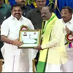 - Recipient of Thanthai Periyar Award for 2012 on 15 January 2013 from Jayalalithaa, chief minister of Tamil Nadu. The award carries cash reward of Rs. 1 lakh, 8 gram gold medal and a certificate of appreciation.[5]