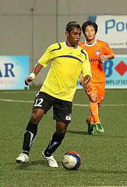 | K. Sathiaraj in action for Woodlands Wellington in a S.League match during the 2012 S.League season. | |||