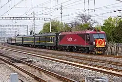 At the border the train is hauled by CR Shenyang or KSR DF5 (Korean:내연100) for the cross border section, then a DF4 or DF4B (Korean:내연200) from KSR is used to haul the train to Pyongyang.