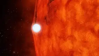 KOI-256 is a double star located in the constellation Draco approximately 575 light-years (176 pc) from Earth.[2] While observations by the Kepler spacecraft suggested the system contained a gas giant exoplanet orbiting a red dwarf, later studies determined that KOI-256 was a binary system composed of the red dwarf orbiting a white dwarf.[4][5]