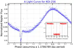 - ^ a b c d Muirhead, Philip S.; Vanderburg, Andrew; Shporer, Avi; Becker, Juliette; Swift, Jonathan J.; et al. (April 2013). "Characterizing the Cool KOIs. V. KOI-256: A Mutually Eclipsing Post-common Envelope Binary". The Astrophysical Journal. 767 (2). 111. arXiv:1304.1165. Bibcode:2013ApJ...767..111M. doi:10.1088/0004-637X/767/2/111. S2CID 30368826.