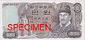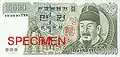 - ^ a b "Brief History of current Korea notes in circulation; 1,000 won note". Bank of Korea. Archived from the original (Flash and HTML) on September 27, 2007. Retrieved November 9, 2006.