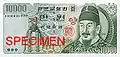 - ^ a b c d "Brief History of current Korea notes in circulation; 10,000 won note". Bank of Korea. Archived from the original (Flash and HTML) on May 5, 2017. Retrieved January 13, 2016.