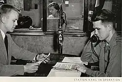 Carleton College radio started in 1917 with the Music Department's initiative to bring radio to Northfield, MN. With an antenna mounted atop Willis Hall, this AM station broadcast until 1929 at an unknown frequency. In 1948 several students on the G.I. Bill, most veterans from the United States Navy, sought to construct and operate a radio station for students on the Carleton College campus. Using money raised from local businesses and out-of-pocket, they paid the college to allow them to construct a small studio dug out next to the foundation of Scoville Memorial Library on the South side.[4] All electronics were handmade out of spare parts and the transmitter was from a scrapped World War II destroyer. The carrier current transmission was carried via coaxial cable through the Carleton College tunnel complex and radio station KARL 680 was born. The studios were relocated to the top floor of Willis (then the student union) somewhere before 1970.