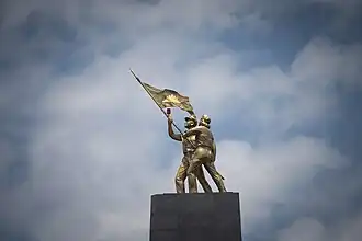 The date of the Salvation Front's foundation was 2 December 1978, in what Khmer socialist militants called a "Reunion Congress".[6] The aim of the FUNSK was to expand as a Cambodian front in order to overthrow Pol Pot's regime of terror. The Salvation Front drew eleven points for the reconstruction of the country. These points would be used after the establishment of the PRK to motivate Cambodians to support the rebuilding efforts and the pro-Soviet structure of the new state to keep the revolution alive with a moderate, pragmatic and humane approach compared to the Khmer Rouge. Although the front was largely controlled by KPRP communists, it included quite a few non-communists in its leadership, such as Cambodian Buddhist religious figures, as well as women.[7]